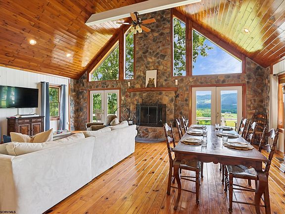 This beautiful mountain chalet offers some of the most beautiful mountain views. Enjoy endless sunsets from the spacious deck or private hot tub. Lovely yard is landscaped and offers a cozy outdoor firepit overlooking a small pond. Open and spacious floor plan with hardwood floors and ceilings and custom built wood burning fireplace in great room. A bright and cheery gourmet kitchen with stainless appliances, 3rd floor primary bedroom suite with full bath and large closet. Lower level offers an additional living space, 3rd bedroom, full bath and plenty of storage space. Priced furnished and appointed. Rental history available upon request.