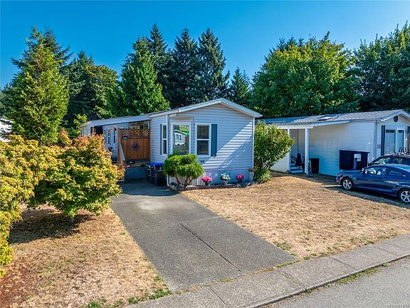 Welcome to easy living! This centrally located home features a new roof, and windows, a fully fenced landscaped yard, new mini split heat pump, and a bright, welcoming interior. From here you are walking distance to groceries, fitness centers, the aquatic center, restaurants, and more. Within a 10 minute drive you can be at the golf course or beach! Access the lovely Pine Grove Park through your own back yard. Perfect for someone looking to downsize, or a first time home buyer. Experience the freedom of a detached home without the expense. Uplands Mobile Home Park is a peaceful, well managed community. Come see for yourself, book a showing today!