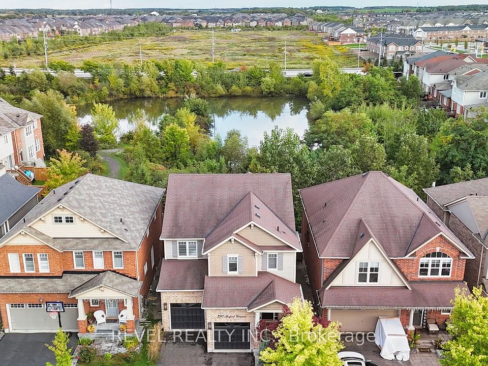 WOW! An absolute STUNNER!! Crafted with care and loaded with upgrades, this immaculate 4-bedroom (+1 in the FULLY FINISHED basement), 5-washroom home offers a perfect blend of luxury and comfort - you DON'T want to skip past this one! The serene and PRIVATE backyard oasis is only one of the show-stopping features this house offers! From the moment you enter, you'll notice thoughtful details like 9-foot ceilings on the main floor and a statement-making staircase that sets the tone for the rest of the home.The chef-inspired kitchen is a true showpiece, complete with top-tier JennAir and Thermador appliances, sleek Caesarstone countertops, and an elegant Nuvolato marble backsplash. The formal dining space features custom plaster crown moulding and decorative waffle ceiling accents - a space that's sure to impress while you're hosting dinner parties or special occasions.Throughout the home, you'll find a combination of premium finishes that our competition simply do not have: modern wide plank flooring, modern colour palette throughout, upgraded lighting, accent walls, premium high-quality window treatments and so much more. The primary suite is a peaceful retreat, offering a walk-in closet and a beautifully appointed ensuite with double vanities, a frameless glass shower with quartz seat, and a relaxing jetted tub. The backyard is ready to enjoy with a full deck, patio area, and hot tub - perfect for entertaining or unwinding at the end of the day. The fully finished basement offers massive look-out windows, this space is super bright and airy! A full bathroom PLUS separate bedroom w/ closet makes this space the perfect retreat. Outside, the premium lot ($$) backs directly onto the pond, providing serene views and added privacy. 390 Gosford Cres is steps away from schools, shopping, dining. No sidewalk means you can actually fit your big truck or van, unlike other listings. This home truly shows 10/10 - book your showing today to see this masterpiece for yourself!
