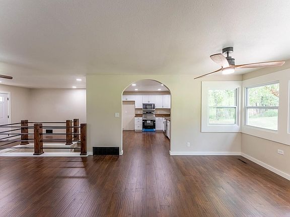 Discover this completely remodeled, five-bedroom, three-bathroom gem with a fully finished walkout basement, nestled on 7 acres just outside the city limits of Mammoth Spring, AR. This gorgeous home is conveniently located within five minutes of town, offering easy access to all amenities. This stunning property boasts a large yard, perfect for gardening and outdoor activities. Inside, you'll find new vinyl plank flooring, fresh drywall, and paint throughout. The brand-new kitchen and oversized laundry room/pantry with custom countertops add modern touches. The entryway features a custom hall tree and staircase railing, adding a touch of elegance. Enjoy the warmth of two large wood-burning fireplaces, one located in the upstairs living room and the other in the expansive downstairs family room. The basement also includes a kitchenette, two bedrooms, a bathroom, and a mechanics room with a tankless water heater and extra storage space, making it an ideal mother-in-law suite. The property is perfect for hobby farming or homesteading, with a pole barn, two chicken barns, and a feed storage building, all equipped with electricity.