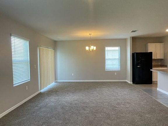 FREE RENT FOR OCTOBER! Wonderful 2019 construction home is move in ready for new tenants. Home features 4 bedrooms, 2 bathrooms, 2 car garage. Split bedrooms. Primary bedroom with en-suite bathroom with double sink vanity and large shower stall. 3 additional bedrooms share a hall bathroom with a tub/shower combo. Kitchen has a closet pantry and spacious island with eat in counter that opens to the living/dining space. Inside laundry room with washer and dryer present for tenants use as a convenience appliance. Carpet in bedrooms and living/dining combo. Tile flooring throughout the rest of the home. Small pet friendly with owner approval and non-refundable pet fee; no aggressive breeds. No rent to be charged for October with security deposit and November rent paid at lease signing.