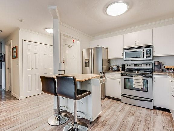 Experience the ultimate in seaside living! This a gorgeously renovated gem with an open-concept living area that has an amazing ocean view that is bathed in natural light. Enjoy the tasteful renovations with new kitchen and bath, crown moulding, and new flooring throughout. The spacious master suite features a practical his-and-hers walk-through closet that connects directly to the new bathroom for ultimate convenience. The insuite laundry room also has plenty of room for storage. Pacific Place is a meticulously maintained building with a well run strata. Located conveniently across the road from the Seawalk You can go for a short stroll down the road for your morning coffee, or later on for your choice of dinner or cocktails! Offering exceptional ocean-view value, this unit is the perfect choice whether you're a first-time buyer or ready to downsize.