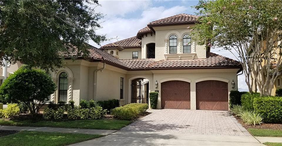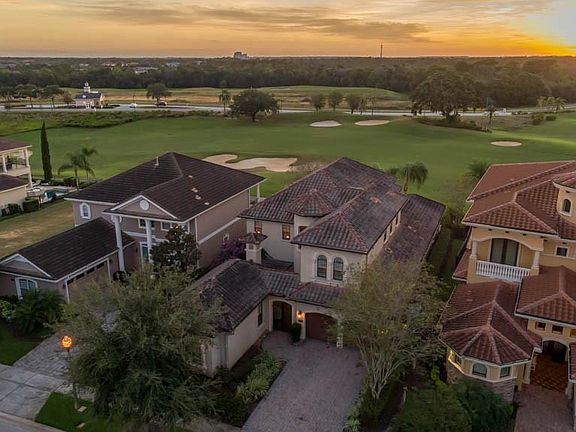 Drastically reduced for fast sale! Exceptional Custom Estate Home featuring 5 large en suite bedrooms, 5 full bathrooms, 2 guest bathrooms including a detached guest/in-law apartment. Fully furnished. Professionally decorated & elegant detailed custom work throughout. The Chef's Kitchen features Sub-Zero Integrated Column Refrigerator, Wolf built-in double ovens and gas range with griddle cooktop, custom cabinetry, granite countertops, wine bar and oversized island. The outdoor living area is astounding with a West facing saltwater pool and spill over spa, outdoor kitchen & fireplace on the Jack Nicklaus Signature Golf Course. The front wrought iron double gates lead to an impressive entryway. On the side an inviting wood pergola shaded sitting area & fireplace. Elegant foyer coffered ceiling. The formal dining room is artistically designed, custom window valance & drapes, faux ceiling painting illuminated by an elegant chandelier, and double doors leading to the front sitting area. Downstairs master bedroom includes a sitting area with views to the pool and golf course. Executive office with coffered ceiling. Elegant wrought iron stair railings will lead your way upstairs to an interior balcony with views to the stylish entrance. Upstairs wet bar with refrigerator & state of the art home theatre. Huge balcony equipped with an outdoor pool table & sitting area overlooking the golf course. Perfectly located to all of Central Florida attractions with easy access to I4 and State Rd 429.