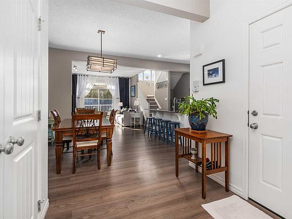Welcome to River Song in Cochrane, where convenience, lifestyle, and affordability meet. This meticulously maintained half duplex delivers spacious living at a fraction of the cost and no condo fees! Step inside to a welcoming foyer with a handy main floor powder room and direct access to the oversized single garage — perfect for storage, a motorcycle, or outdoor gear for the enthusiasts taking advantage of the short drive to the mountains. The open-concept main floor is filled with natural light thanks to a south-facing patio door and expansive stairwell windows. The bright white kitchen features granite countertops, stainless steel appliances, a large pantry and ample storage, seamlessly connecting to the dining area — ideal for hosting family and friends. Just off the dining space, the inviting living room with its cozy gas fireplace offers the perfect place to relax and bask in the natural light, especially on the cooler days. Upstairs, huge windows continue to flood the home with light. A spacious bonus room makes a great TV lounge or play area. The primary suite boasts a walk-in closet and a large private ensuite, while two additional bedrooms, a full bathroom, and convenient upstairs laundry complete the level. The basement is a true standout — a “speakeasy” style retreat that doubles as a recreation space or guest area, complete with a full bathroom equipped with a vintage soaker tub and vanity. Outside, enjoy your south-facing back deck with BBQ gas line and large patio — perfect for summer gatherings and laid-back evenings. This home is a fantastic fit for many lifestyles: downsizers who still want room for guests, buyers ready to move up from an apartment or townhouse or first-time homeowners looking for comfort and functionality. Come see for yourself how this property strikes the perfect balance of style, space, and value!