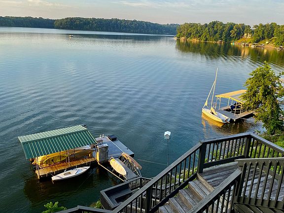 REDUCED TO $950,000. Welcome to your dream waterfront oasis on Lake Barkley! This waterfront home promises an unparalleled living experience with breathtaking Lake Barkley as your backdrop.This cozy waterfront cottage features a seamless open floor plan that invites the stunning views inside.  Step outside onto the multiple lakeside decks to take in the one-of-a-kind vistas, or relax in the hot tub as you enjoy the peaceful ambiance of the lake. The covered dock, equipped with a lift and large swim platform, ensures that your boating adventures are just steps away, with water depths of 15 feet or more at winter pool.Entertain guests in style on the large screened porch, or enjoy a private retreat in the detached bunk with its own patio and fabulous water views. A spacious 36 x 24 detached garage offers ample storage for all your water toys.Whether you're seeking a permanent residence, a vacation escape, or a lucrative rental investment, this property caters to the discerning waterfront home buyer.