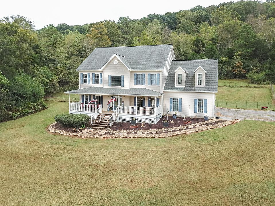 Enjoy the serenity of this beautiful private country farm home with a pole barn located in the country on 13+ acres. The home offers beautiful cathedral ceilings, wood fireplace, large bedrooms and more! Extra rooms that could be a game room, or library and the the third story offers extra room that potentially could be used for a guest/teenage bedroom with ensuite or media room, man cave or more. Perfect home for grow and entertain. New Hvac and appliances. Back yard fenced for animals. Close to Knoxville for shopping and restaurants and fishing!