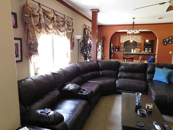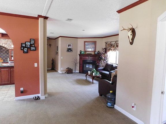 Beautiful home on the Post Road with 4.83 acres! Tucked away with much privacy, this four bedroom, two bath home boasts a a large kitchen with an island & lovely stone hood vent. Columns & an archway separate the dining & kitchen. Crown molding is throughout home with built in cabinetry and storage. Open floor plan provides a living room, den, & a huge laundry room with plenty of countertops & cabinety. The master bedroom is spacious! While you are soaking in the tub, you can have the option to watch tv with built-ins. Master bath has his/her vanities, separate shower, and walk-in closet! Yard features above ground swimming pool and a storage shed. Each bedroom has walk-in closets except small bedroom. Owner occupied...must have 24 hour notice to show! Plat is on file.
