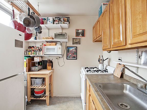 Well-configured L-shaped studio with separate sleeping area, located on a leafy, residential block. Large living/dining area, 24 feet long, allows room for dining table, couch, and more. Western exposure with neighborhood views enhanced by the afternoon sun. Windowed kitchen and living room and hardwood floors throughout. Two large closets, including a walk-in. One block to Cortelyou Road Q train, near express buses, weekly year-round Farmers Market, Flatbush Food Coop, and all of Cortelyou Road's reputed restaurants and bars.