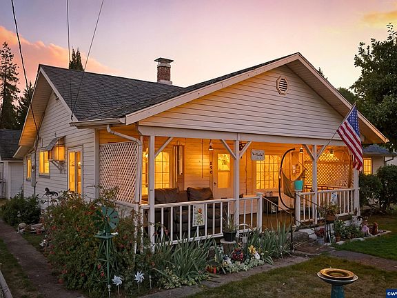 Check out this cute & cozy, single-level farmhouse in Mill City! Home sits on a fully-fenced double corner lot just blocks from Kimmel Park, the Santiam River, and Santiam Elementary. Home features new interior paint, original kitchen cabinets and farmhouse sink, hardwood floors, central heat & air, gas stove insert, and detached garage w/ automatic opener and cold storage. Yard has fruiting apple & pear trees, and two 20' gates for RV/boat parking. Don't miss this absolute gem of a property!