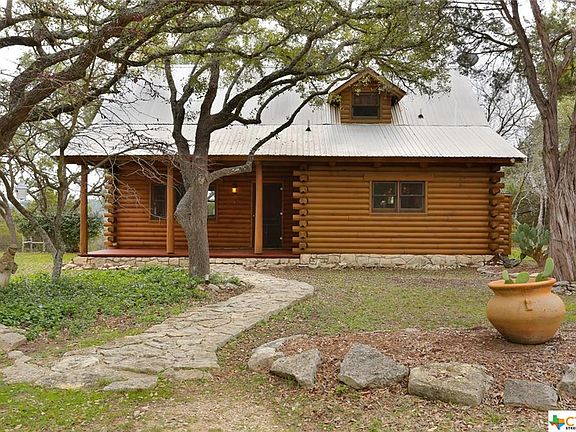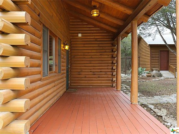 Stunning hill country oasis with unbelievable sunset views. This is the perfect retreat from the hustle & bustle. Main house is a gorgeous log cabin with covered porches, towering ceilings & fireplace. Downstairs bedroom, plus huge upstairs loft and 1/2 bath- great for guests! Cross fenced yard. Bonus separate studio style bunk/guest house with kitchen & full bath. Plus Additional storage/smokehouse is the perfect gathering place. 4.5 secluded acres with views for miles. Fully fenced. No restrictions. Low tax rate.