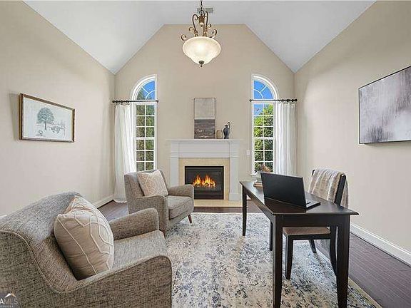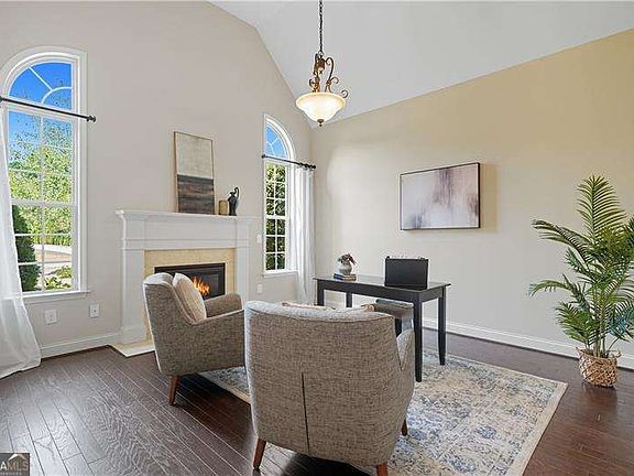 Welcome to this beautifully maintained Traton-built, 3-sided brick home located in the highly sought-after Harrison High School district. From the moment you step into the grand two-story foyer, you're greeted with timeless elegance, thoughtful design, and 12-foot ceilings throughout the main level, creating an open and airy feel. To the left, a cozy office or library with its own fireplace offers the perfect space for work or quiet reading. To the right, the formal dining room is ideal for entertaining, comfortably seating up to 12 guests and featuring elegant tray ceilings that add a touch of sophistication. The main-level owner's suite provides a peaceful retreat, complete with tray ceilings, a spacious layout, and easy access to the main living areas. The living room impresses with soaring coffered ceilings, custom built-ins, built-in surround sound, and a gas/wood-burning fireplace-perfect for cozy nights or entertaining guests. The kitchen features granite countertops, stainless steel appliances, and a functional layout. Just off the kitchen, you'll find a spacious laundry room with a utility sink and a gas hookup if needed-offering both flexibility and convenience. Upstairs, you'll find generously sized secondary bedrooms and an oversized media room with double French doors and built-in surround sound-ideal for movie nights, a playroom, or a teen retreat. The attic offers ample storage space, helping you stay organized with room to spare. The three-car garage provides plenty of space for vehicles, tools, or even a home gym, and includes a hot/cold water tap-great for washing cars, pets, or tackling outdoor cleanup with ease. The flat, private backyard is perfect for a future pool, outdoor entertaining, or letting kids and pets run and play. Relax on the inviting rocking chair front porch, and enjoy the peaceful charm of this established community. This Traton-built home combines quality craftsmanship, thoughtful upgrades, and an unbeatable location-your dream home awaits!
