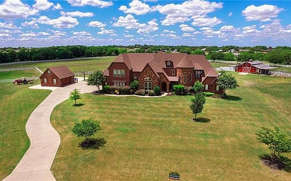 Premier horse property just south of Dallas in north Ellis Cnty. This exclusive gated community features large, upscale homes priced less than the northern DFW suburbs. This magnificent 5,315ft home is filled with 4 bdrms, 6 bths, 2 living, 2 kitch, theater rm, vaulted ceilings, wine cellar, wood, stained concrete and slate rock flrs, 5car garage all on 6.89ac. An amazing pool and 4 stall BarnMaster barn makes this no doubt a king''s showplace.