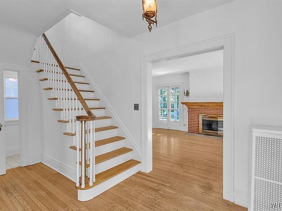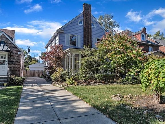 Charming North Buffalo Colonial with Classic Character and Modern Updates. Welcome to this beautiful 4 bedroom, 1.5 bath side-entrance Colonial nestled in highly desirable North Buffalo. This home combines timeless details with thoughtful upgrades, including replacement windows and gleaming hardwood floors throughout. Step through the elegant double-door entry into a welcoming foyer featuring a stunning staircase & coat closet. The spacious living room offers a cozy fireplace flanked by French doors that open to a covered front porch perfect for relaxing evenings. Host gatherings in the formal dining room, which has direct access to a private flagstone patio. The updated kitchen features granite countertops, stainless steel appliances, and an adjoining breakfast room for casual dining. A half bath completes the first floor. Upstairs, you'll find a generous primary bedroom with ample closet space, two additional well-sized bedrooms, and a beautifully updated full bath with a subway-tiled tub/shower, modern tile flooring, and a vanity offering extra storage. The partially finished third floor provides a fourth bedroom and a spacious unfinished attic ideal for storage or potential expansion. The full basement boasts tall ceilings, solid mechanicals, and laundry area. Outside, enjoy low maintenance siding, a fenced backyard, and a two car detached garage. This is a rare opportunity to own a classic North Buffalo home with the perfect blend of character, comfort, and convenience.