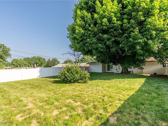Welcome to this charming ranch-style home, nestled on a 0.32-acre lot and offering over 1,200 sq. ft. of bright, inviting living space. Step onto the welcoming front porch and into the spacious great room, where a modern color palette complements a cozy wood-burning fireplace with black brick and a stone mantel. A built-in bench, coat closet, and a wall of oversized windows fill the room with warmth and natural light. The eat-in kitchen features stainless steel appliances, abundant counter space, a built-in pantry, a brick accent wall, a breakfast bar, and a dining area with sliding glass doors that lead out to the backyard. Out back, you’ll find a fully fenced yard perfect for kids or pets, with a large patio and plenty of green space, ideal for outdoor entertaining. Just off the kitchen, two bedrooms offer generous closet space. The full bath includes a tiled shower/tub combo, a laundry chute, and built-in storage. The lower level includes a laundry area, a second full bath, and two large rooms perfect for storage. Conveniently located near shopping, dining, and highway access. Don’t miss your chance—schedule your private showing today!