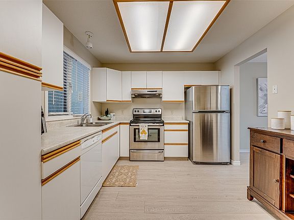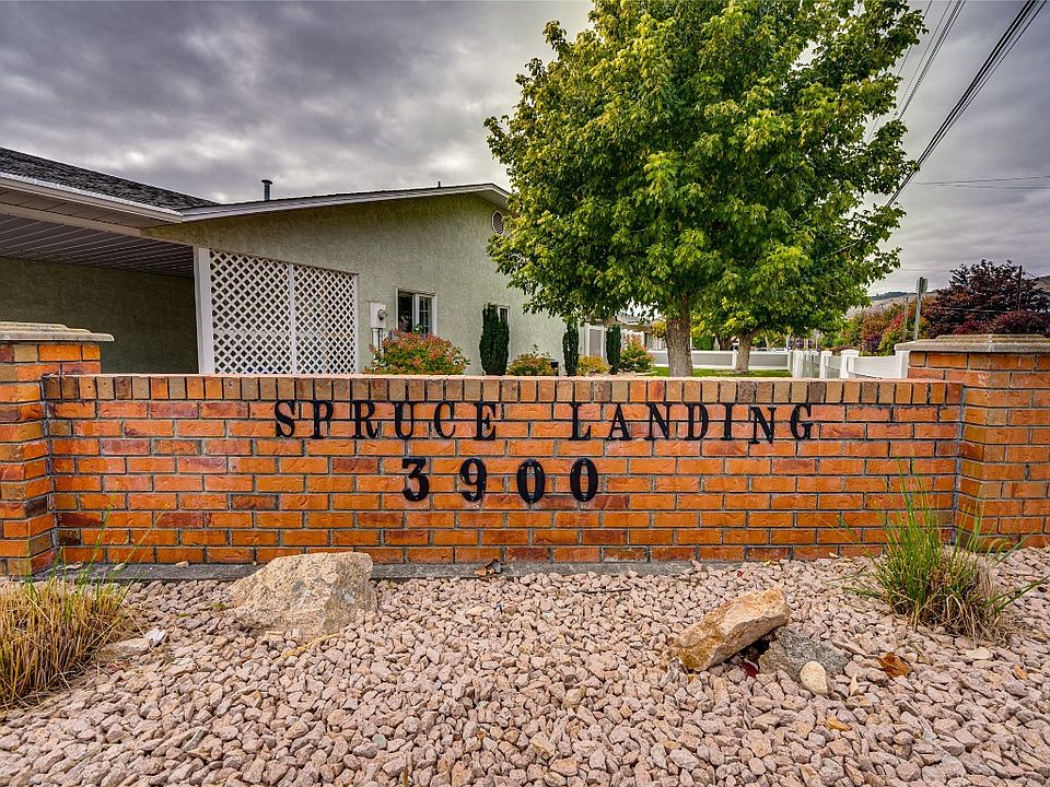 Welcome to this move in ready beautifully updated 2-bedroom, 2-bathroom rancher with a full unfinished basement, located in the sought-after 55+ community of Spruce Landing. Enjoy this bright, and spacious home that features a large kitchen with an open-concept living and dining area that is perfect for hosting family and friends. A few steps through the sliding doors leads directly to your private fully fenced backyard. Enjoy the covered patio and low-maintenance garden area, complete with durable epoxy flooring—ideal for year-round barbecues or relaxing outdoors. The large primary bedroom offers a generous walk-in closet and a well-appointed 4-piece ensuite. You'll also appreciate the guest bedroom and full bathroom along with the convenience of main-floor laundry. This pet-friendly community (one cat or a small dog up to 14" at the shoulder, with approval) is within walking distance of downtown shops, medical offices, restaurants, coffee spots, and transit. Spruce Landing offers a vibrant, lock-and-leave lifestyle, with a welcoming clubhouse featuring a library, pool table, shuffleboard, and regular social events to connect with your neighbors. New floors, hot water tank and No poly-B plumbing. Whether you're enjoying full retirement or simply looking to slow down, this charming home in a friendly community offers the perfect blend of comfort, convenience, and connection. Quick possession is available