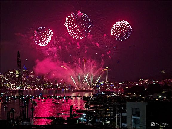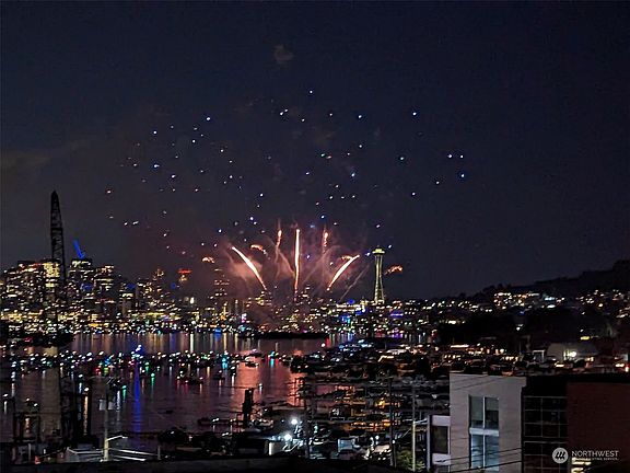 Unobstructed spectacular view of Lake Union, Seattle skyline & Space Needle. Fabulous 4th of July fireworks, Christmas Ships & so much more! Beautifully updated top floor condo flooded w/light and skylights. One of only a few units w/ central heat & AC. The only unit with its own level 2 outlet (220/50 amp) for EV charging (owner pays the electricity). Chef-inspired custom kitchen high end appliance package including 36in Miele, sink & prep sink, updated master suite & guest bath, walnut plank flrs, quality finishes/ fixtures throughout. 2 secure garage spaces + storage. Burke Gilman Trail access across the street for biking, walking, skating or just go downstairs to the community workout rm. Minutes to Wallingford's bistros & shops.