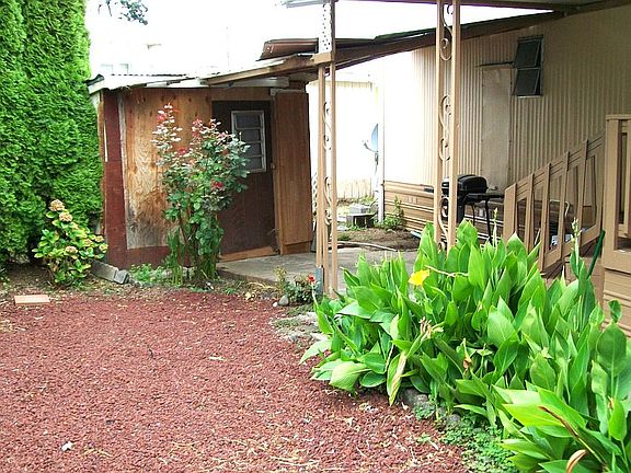 Outside there is an accessible ramp, covered porch, storage shed, room for parking, and low maintenance landscaping! Space rent: $670/month