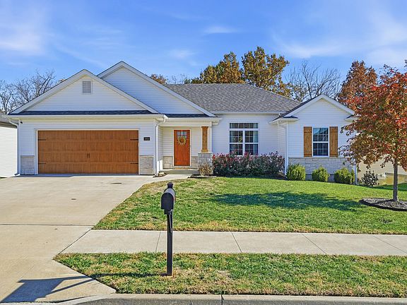 Discover your dream home in this impeccable ranch-style walk-out, boasting an expansive 2,600 sq. ft. of meticulously designed space. This home features 4 well-appointed bedrooms and 3 full bathrooms alongside a versatile second living area, all set against the tranquil backdrop of a lush, wooded lot. The open floor plan is accented by sleek laminate wood flooring and a palette of beautifully chosen wall colors, enhancing the sense of space and light. The primary suite stands out with its lighted tray ceiling, large walk-in closet and luxurious ensuite, equipped with a dual vanity and shower with glass door. Buyer to verify all info including but not limited to schools, taxes, sq. footage, room sizes, lot size, zoning, restrictions, HOA fees, etc. Culinary enthusiasts will appreciate the modern kitchen's white cabinetry, granite countertops, and spacious center island. The lower level offers an entertainment oasis with a family room, integrated wet bar, and a dedicated theater room for movie nights. A versatile John Deere room with roll-up overhead door, makes storing items a breeze. Outside, enjoy peaceful moments on the deck or patio overlooking a fenced backyard, perfect for leisure and entertainment.