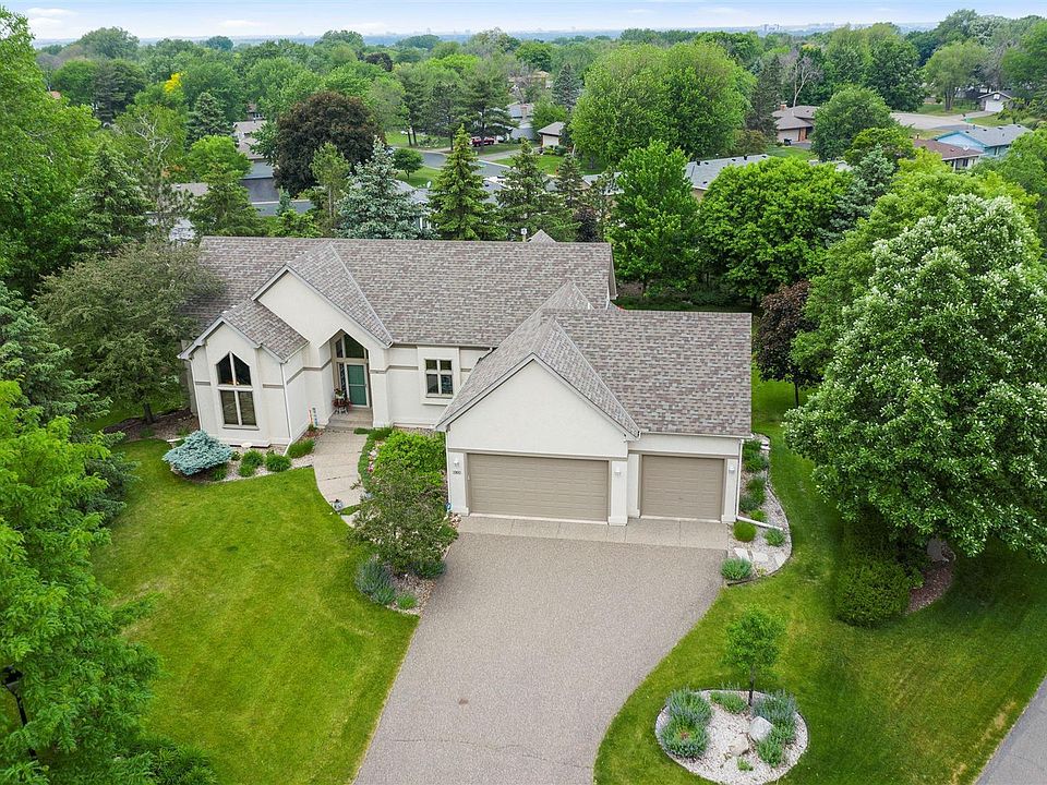H&B due Sunday 5pm, Original owner walkout executive rambler on quiet cul-de-sac in highly desired Eagan neighborhood. You'll love the lot with awesome wooded views backing up to Blackhawk park. This wide open floorplan has huge windows with panoramic views, soaring vaulted ceilings, and gleaming hardwood floors. This home has an updated kitchen, high end stainless appliances, updated bathrooms, newer carpet, & custom paint. There is a private owners suite with private full bath, separate shower, and walk-in closet. You'll love the 3 car garage, lawn sprinkler system, & beautiful landscaping. The walkout lower level has a huge family room, 2 bedrooms, 3/4 bath, and lots of storage. You'll love the deck with your staircase leading to your patio & private backyard. Great location, short walk to Blackhawk Park right from your backyard, close to restaurants, more parks & trails & award winning ISD 196 Eagan schools, close to MSP airport & freeways with access to both downtowns.