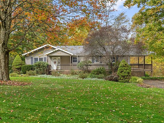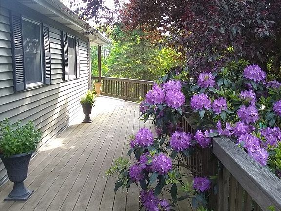 Enjoy one level living in well maintained peaceful setting on private 5 acres. Wrap around/partly covered Trex deck lets you enjoy fresh air in sunshine and shade. A warm fireplace in Family Room makes for enjoying cozy game and movie nights with friends/family. Large eat-in Kitchen with ample natural lighting. A 12x8 Rock Wall in basement is the start of a home gym or rumpus room for the kiddos. Enjoy a dip in the greenhouse shrouded hot tub on a cold winter night. Stretch you legs after work on private park quality trails spanning 2 acres of property. Your imagination is the limit with how to use a 3 tall bay 52x40 oil heated detached garage. 2 car tandem attached garage. See trees, meadow, grass, total seclusion out every window. Newer well pump, pressure tank, sediment filter, water softener, water heater, A/C 2015. One mile from 286, 366 while still 15 min from Monroeville, 25 min to downtown.