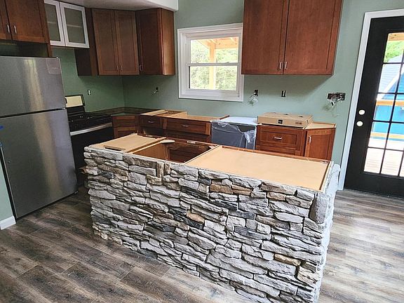 TOTAL RENOVATION - SNEAK PEEK! 4BR, 3BA property on 1.01 acres less than a mile from the lake. Thoughtful redesign features a finished lower level with rec room/2nd living area & bedroom, custom tile bathrooms, new roof, new HVAC forced air (propane), central A/C, covered porch, stone fireplace (gas) and more! Huge garage with additional upstairs storage area. Spacious driveway with plenty of parking. Secluded, wooded setting offers incredible privacy. Construction ongoing, on pace for completion by end of October.