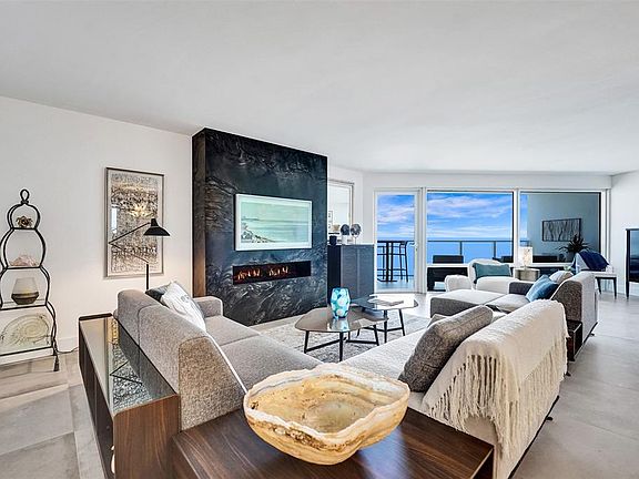 Experience luxury coastal living in this fully renovated desirable B-stack unit - the largest 2-bedroom layout in the building - with direct ocean views from every room. The chef’s kitchen features Sub-Zero appliances, a 48” Aga range with three ovens, Wolf ventilation, Galley workstation sink, and custom pantry. A 54” linear fireplace set against a floor-to-ceiling black leathered granite wall adds a dramatic touch. Featuring Porcelanosa tile, a private oceanfront balcony, spa-like baths, California Closets, and in-unit laundry. Resort-style amenities include 24/7 front desk, valet parking, oceanfront pool deck, and on-site restaurant and bar. Located in an exclusive 55+ community in Lauderdale-by-the-Sea, this condo offers modern luxury, timeless design, and a serene seaside lifestyle. This building has undergone significant renovations. Concrete restoration has been recently completed and recertification is imminent.