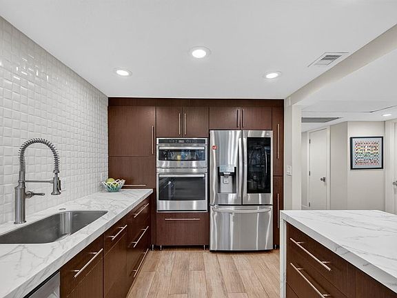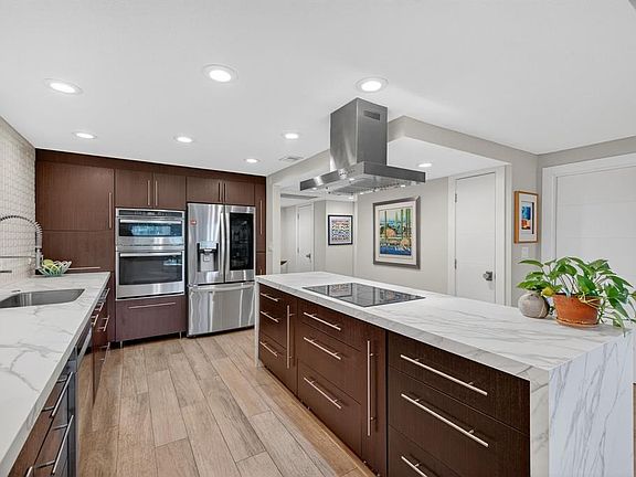 This is a must see! Come and take a look at this fully renovated, 1st-floor, corner condo featuring a contemporary open concept kitchen with high-end stainless-steel appliances. This residence also features FULL IMPACT WINDOWS INCLUDING THE GLASS ENCLOSED PATIO as well as beautiful flooring throughout. The glass enclosed patio/dining area provides a tranquil view of the golf course. The 2nd and 3rd bedrooms have been combined to create a very spacious (25' x 14') master suite with extensive custom-built cabinetry with ample storage for clothes, etc. The "original" master bedroom (16'x15') features an en-suite bathroom and a custom-built queen size murphy bed (barely used) and is included with the sale. The condo fees include cable tv, water, exterior insurance, landscaping, etc.