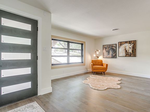 Ridglea Hills offers a beautifully updated mid-century remodel one-level home. Tall ceilings and an open-concept layout create a spacious, airy feel, while abundant new windows flood the interior with natural light. Once inside, you will be wowed by the spacious rooms, offering 5-inch white oak hardwoods throughout most of the home. Formal living and dining rooms. Impressive theatre room. 4 bedrooms plus flex room, including a mother-in-law suite, 3 full baths, one half bath, 2-car garage, and so much more. Kitchen features a 6-burner gorgeous range and vent hood, drawer microwave, and white and gold appliances. Quartz and onyx countertops; the onyx creates a beautiful night light in the kitchen for ambience. All of this on a huge three-tiered lot with room for a pool by a creek. New roof, AC, and all new appliances, custom cabinets.