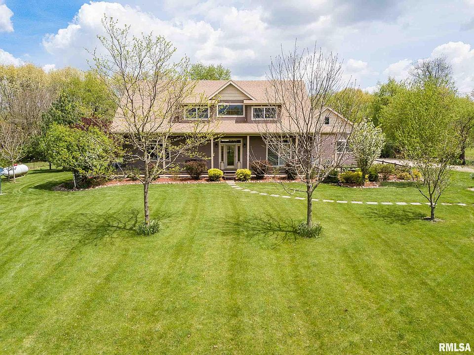 Tranquil living awaits you in this beautiful, custom built, 3BR, 2.5 bath, one owner home on 6.93 acres. Enjoy the peaceful view from the wrap around front porch, have fun entertaining on the 38'x24' deck or gather around the fire pit on a cool evening. No subdivision here, so you can have horses, goats, chickens, etc.! The 36'x117' outbuilding is ready w/4 horse stalls, concrete floors, electricity, office area and 2-12'x12' doors. There's more to love in the house-like tons of natural light throughout; main floor master suite w/huge walk-in closet; great sunroom; balcony w/reading nook; large sized bedrooms each with its own walk-in closet; finished basement; beautiful, fully applianced kitchen; formal dining room; Pella windows; 3 car garage w/attic storage & so much more! House has 2 furnaces, 2 AC units & a whole house generator. There's also a 26'x12' shed. Home warranty w/acceptable offer. Appliances stay but not warranted. Measurements & square footage are approx.