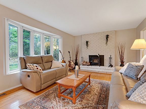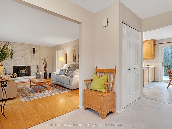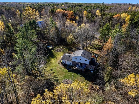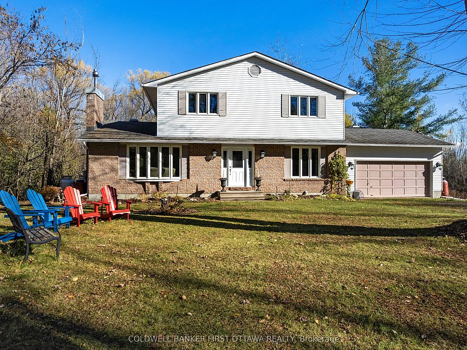 Family home in the country, on 23 acres with two meandering creeks - just 25 mins from Kanata. This home's modern upgrades and classic design create comfortably pleasing spaces for the whole family. Double attached garage with great family function due to convenient inside entry to both main & lower levels plus door to yard. Outside, the kids will thrive playing in and exploring natural surroundings while parents relax in tranquil beauty. The growing family will especially appreciate having four large bedrooms on the second floor, including primary suite. All freshly painted, the 4bed, 2.5bath home offers spacious sunlit rooms. Front foyer has big double closet and new 2025 laminate tile floor. Livingroom features fireplace with upscale Jotul woodstove insert. Hardwood floors flow from living room to open dining room with big window that includes built-in Hunter Douglas blinds. Family-sized kitchen has new 2025 quartz countertops, wall of storage cupboards and dinette with patio doors to new 2021 deck. Family room suits quiet times, games and movie nights. Main floor powder room. Mudroom big full-length closet and door to attached double garage. Upstairs, primary suite has huge closet and 3-pc ensuite with shower. The three other bedrooms also have large closets. Sparkling renovated 4-pc bathroom with quartz vanity. Lower level rec room, laundry station, workshop with workbench and access to attached garage. You also have auto connect 2024 Generac that can power the whole home. Extra-large yard has perennial gardens, garden shed, portable greenhouse and woodshed. Cut firewood for woodstove is included. Possible to apply for Conservation Land Rebate to reduce property taxes. Bell Fibre and cell service. Located on paved township road with garbage pickup, mail delivery & school bus stop. Walk to Stonecrest Elementary School. And, family fun 5 mins away at Fitzroy Provincial Park for swimming & boating. Besides being 25 mins to Kanata, only 15 mins to Arnprior.