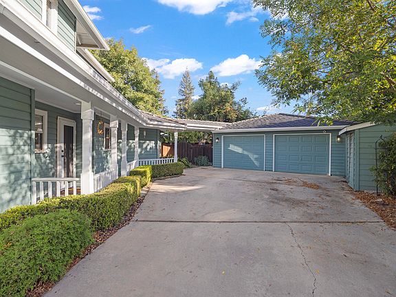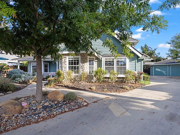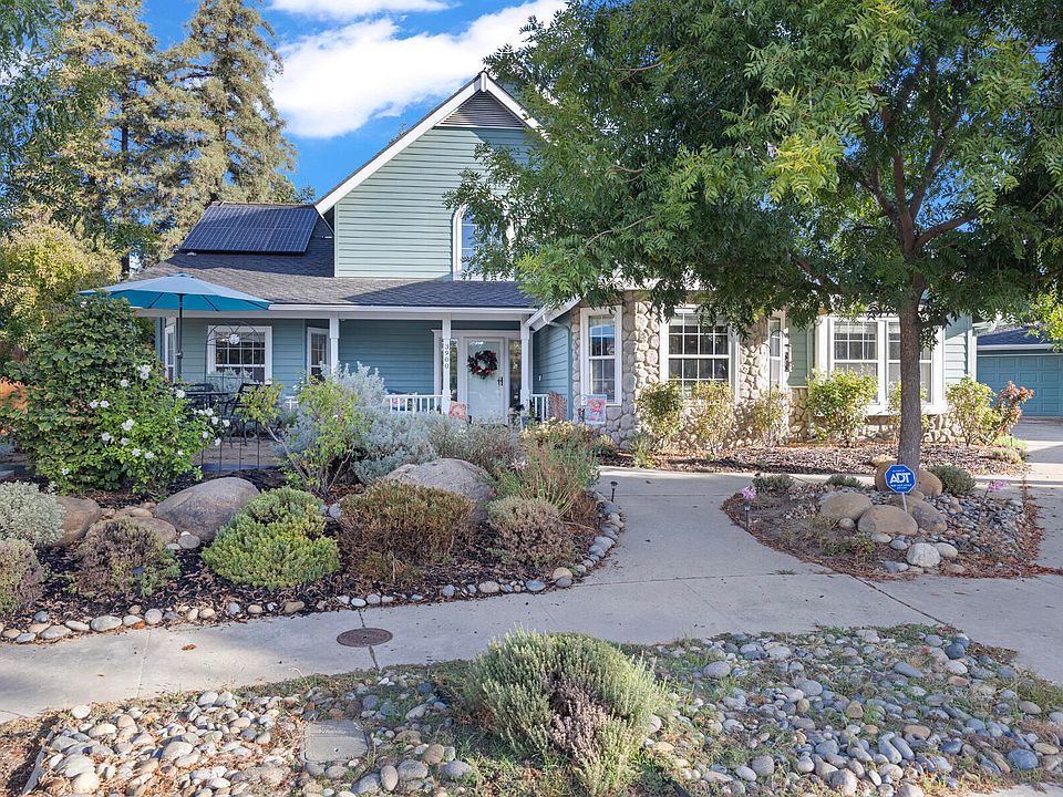 Welcome to this beautifully maintained and upgraded 3,117 sq. ft. home, ideally located in Visalia's highly desirable Hyde Park neighborhood. Set on nearly a quarter-acre lot, this property blends elegance, comfort, and functionality with thoughtful updates throughout. The vibrant exterior features a well-landscaped front yard with flowering shrubs and mature plum and apricot trees. Recent upgrades include new rain gutters, stylish entry and security doors, and new windows—enhancing both curb appeal and peace of mind. Inside, soaring ceilings, updated bamboo hardwood flooring, and a striking spiral staircase set the tone for the home's refined interior. The spacious living room is filled with natural light and features a cozy fireplace, while the formal dining area offers lovely views of the yard and seamless flow into the kitchen. A chef's dream, the kitchen boasts stainless steel appliances, a butcher block island, farmhouse sink, tile flooring, walk-in pantry, and ample cabinetry. A bright breakfast nook completes the space. The luxurious primary suite offers backyard access and a spa-like bath with dual vanities, soaking tub, double-headed shower, and his-and-hers closets. Two additional main-floor bedrooms feature large closets, ceiling fans, and garden views. Upstairs, a junior master suite includes a private bath and a versatile loft with built-in shelving and window seating—ideal for guests or multigenerational living. The backyard is an oasis with mature trees, lush landscaping, and a tranquil fountain. Additional highlights include OWNED (26) solar panels, a brand-new HVAC system, new water heaters, new carpet, fresh paint inside and out, a whole-house fan, and a three-car garage. Located near parks, shopping, and eateries, this exceptional Hyde Park home offers a rare opportunity to enjoy modern living in one of Visalia's most sought-after neighborhoods.