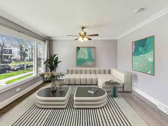 Stunning remodeled ranch on a corner lot in Chicago's hottest neighborhood, Avondale! This move in ready single family home features 4 bedrooms and 2 bathrooms over 2,000 square feet with a large back yard and 2 car garage. Spacious main living room is large enough to accommodate separate living and dining areas. Kitchen was completely updated in 2020 to include a generous number of white cabinets, quartz countertops, and stainless steel appliances. Main level features 3 bedrooms and 1 bathroom with tiled floor and surround and large soaking tub. Additional updates when home was remodeled include engineered hardwood floors throughout main level and new doors and windows. The finished basement has one additional bedroom, side by side laundry, and large 24x12 recreation room that can be used as a family room, workout area, or additional flex space. Additional features such as updated lighting and sliding barn doors in multiple bedrooms provide a modern, updated aesthetic. The corner lot provides a side garage making for easy parking, and the large back yard and paver patio is perfect for entertaining. Ideal Avondale location provides easy access to CTA Blue Line and Kennedy Expressway. Walk to all of the restaurants on Pulaski and enjoy all of the area amenities in what Time Out ranks as one of the Coolest Neighborhoods in the World!