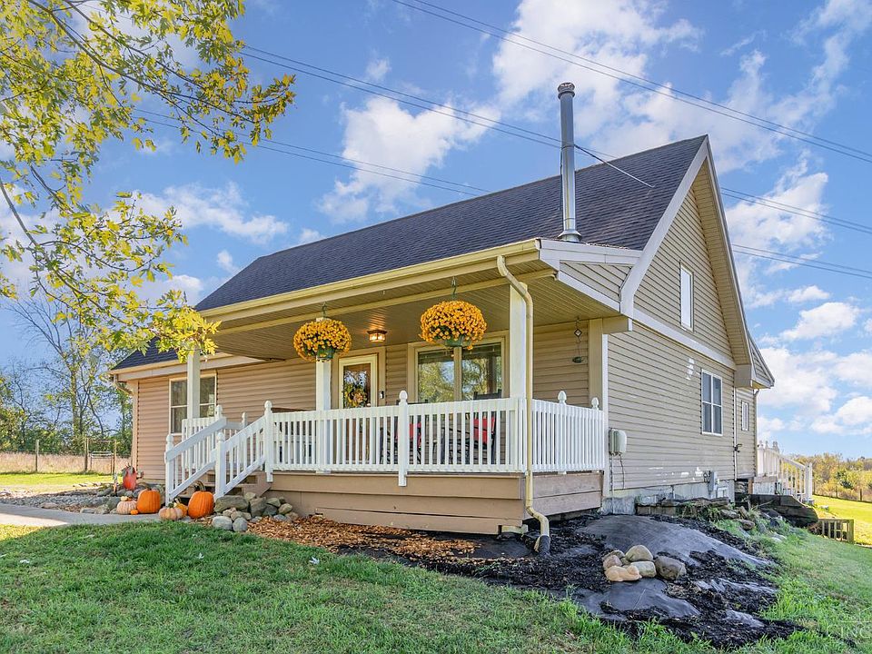 3bedroom 3 bath ranch full basement with walk out. Awesome front porch and back deck, partially covered. Fruit trees run to the barn in the back yard. Nice size stocked pond behind the barn. Nice size chicken coop. There are 2 barns one is 30 X 40 that has plenty of room for horses.
