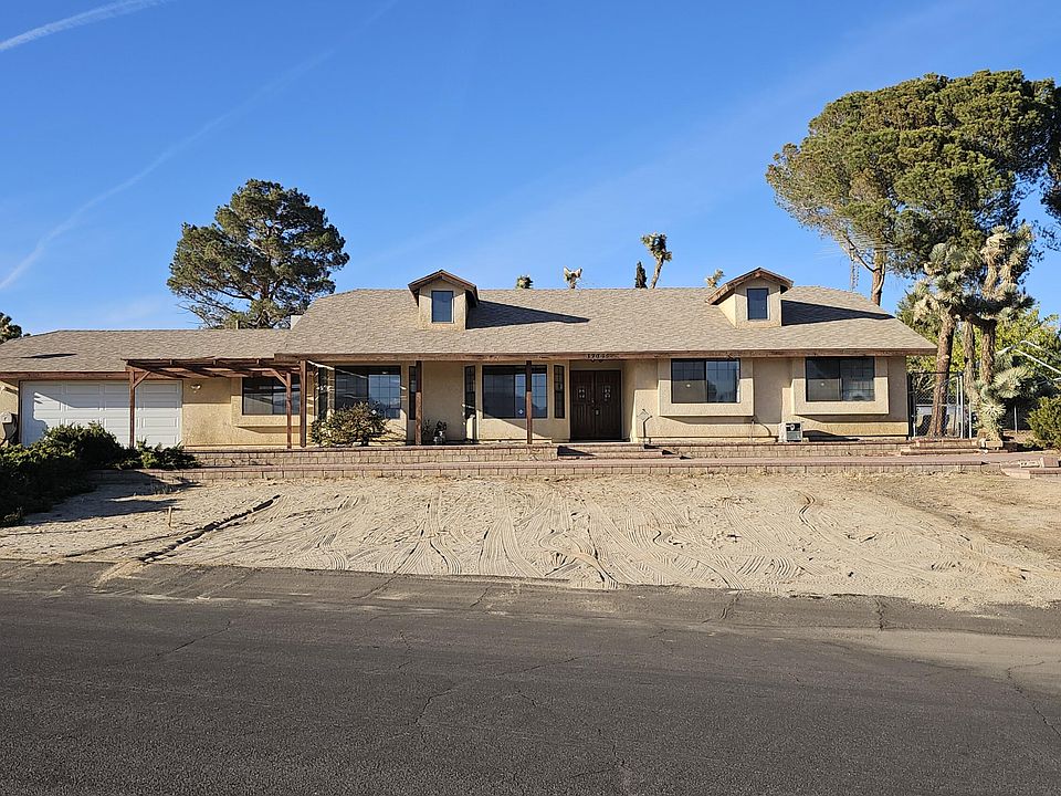 Location, location, LOCATION! This unique & large ranch style home sits on a 3/4 acre corner lot. Featuring breathtaking views of the mountains & valley and backs up to the buttes with full access. Having only 2 owners, this property has been well cared for and shows true pride of ownership! The interior encapsulates an open floorplan with a massive laundry room. The family room showcases high wood planked vaulted ceiling & a stunning brick cascaded wood burning fireplace with a gas starter giving it that special cozy atmosphere. The master bedroom includes a walk-in closet, sizeable bathtub and a separate spacious shower. Brand new paint, flooring & modern ceiling fans throughout the home. Newer roof & septic, as well as, dual AC & heating unit along with a separate swamp cooler. The land encompasses native Joshua trees, cross fencing in the backyard, storage shed and plenty of space for animals and/or a garden. This property is move-in ready and a MUST SEE! Don't wait, get your offers in today!