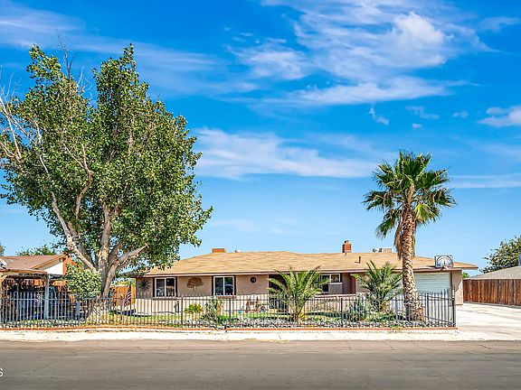 The property sits on nearly 30,000 sq. ft. of flat, usable land zoned for horses — tremendous curb appeal with a fully fenced wrought iron privacy fence with gate in the front yard and courtyard area along with fully fenced chain link and cross-fencing in the backyard!! The front yard boasts mature landscaping, grassy areas, and palms, while the backyard features a covered patio, storage sheds, and plenty of space for horses!!