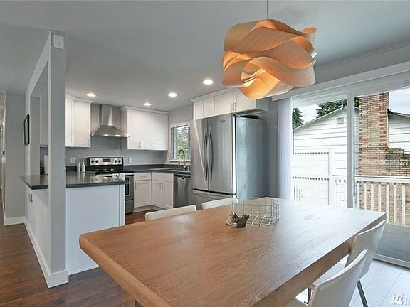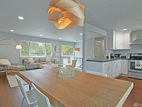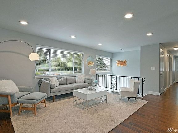 Fully remodeled & move-in ready home in Mountlake Terrace. The gorgeous open-floor plan is full of natural light. Updated chef's kit w/ quartz counters, SS appl, shaker cabs. Main living is spacious w/ gas fpl & connects to beautiful dining area. Upstairs has 3 beds & 1 bath w/ two huge decks. Downstairs features bonus/rec area, 3/4 bath & master ensuite with walk-in closet, full bath & gas fpl. Blocks to shopping, schools, parks, light rail & freeway. 2-car garage, RV/boat parking. Must see!