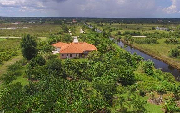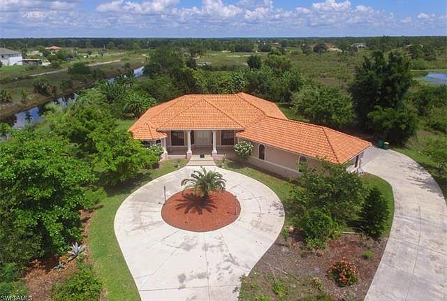 Elegant custom estate home in Golden Gate Estate. This charming Florida home with spacious split open floor plan has a lot to offer. Home features 4-bed or 3-bed + den, 3.5 bath, living and family rooms, formal dining, breakfast nook, storage room, oversize 3 car garage in 4848 sq. ft. total with 3174 sq. ft. living area on cleared 5.83 acre canal lot. Home sits on the 3.5 acre along canal side and remaining can be split. Gorgeous Master Suite and Master Bath with jetted tub, bidet, walk-through shower, walking closet, his & her vanities. Upgraded tile throughout the home. New A/C in 2017, New Whole House RO system in 2016. This completely upgraded, light and bright home combines quality craftsmanship and charm, and features lighted and crown molded tray ceilings. Kitchen features top of the line appliances with granite counter top, 40" range with side oven, 680CFM hood vented out. 2 water heaters, one close to Master bedroom for quick hot water. 8 camera video surveillance, completely fenced with automatic entry gate. Ceiling speakers, 4 inside and 2 lanai. Automatic attic cooling fans. A rare find tropical paradise with lots of fruit trees and a pond. A MUST SEE TO APPRECIATE!