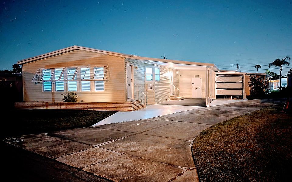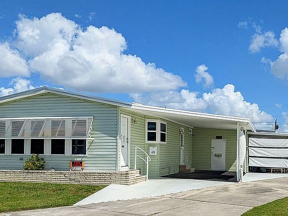 Prime Sarasota, FL location just blocks from Der Dutchman restaurant, so close to the Pinecraft community & next to the Legacy trail ! Located within 55+ community Bahia Vista Estates to include a large heated swimming pool, Pickleball courts, Shuffleboard Courts, Private Dog Park, Large clubhouse, full exercise Gym and outdoor Pavilion with gas grills. This recently remodeled home has all vaulted ceilings and an installed security system. The indoor laundry has a new washing machine just off the spacious entry foyer. In the kitchen is a new refrigerator, lots of cabinets, countertops & storage, dishwasher, built in microwave & garbage disposal. The Dining room has a built in china cabinet and is open to the large living room with a wall of windows facing west. The Master bedroom has a walk in closet and an ensuite private bathroom, with a large tiled shower with sliding glass doors AND a free standing 5 ft long soaking tub. The additional bedroom has another walk in storage closet. The full bathroom in the hallway has a tiled shower with glass doors and a 4 ft long mirror. Just outside the foyer door are (rarely seen) 2 carports and the 12' x 12' shed with 220v power and a utility sink with hot/cold water. All new in 2024 - new full metal roof, new air conditioner, new vapor barrier and new reinforced tie downs ! Lot rent at $841/monthly include all amenities, trash pickup & lawn services. HOA (optional) $20/ annually. Home is ready for immediate occupancy !