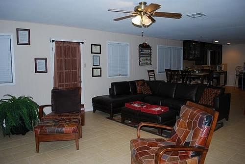 -Door of Opportunity!!!Walk right in & feel immediately at home in this well-laid out floorplan on a peaceful, tree-studded street in a most convenient location. Oversized, fenced yard offers lots of room for little ones to roam, plus a large, covered patio for the grown-ups? al fresco enjoyment. A columned, covered front porch greets the visitors & guides them into the hard tiled foyer. French doors lend audio privacy to the study/office, dressed in warmly hued wood laminate flooring. Hard-tiled flooring stretches through the Texas-sized ?Great Room? to the dining area & adjacent kitchen, which is outfitted with up-to-date stainless steel appliances, dark stained cabinetry, & ceramic tiled backsplash. Mastersuite faces the backyard & sports 2 closets w/mirrored sliders, & an attractive bath boasting granite topped vanity & slate tiled shower alcove. The 2 minor bedrooms are generously proportioned & have ample closet space & ceiling fans. Cultured marble tops the vanity in the hallbath, ceramic tiles surround the tub. Interior utility room has additional cabinets & links to the dual car sized garage. Exterior & interior were freshly painted, new carpet was installed in the bedrooms, & additional renovation was completed.