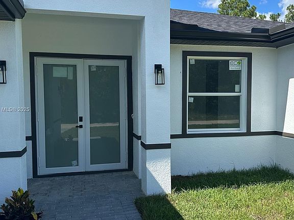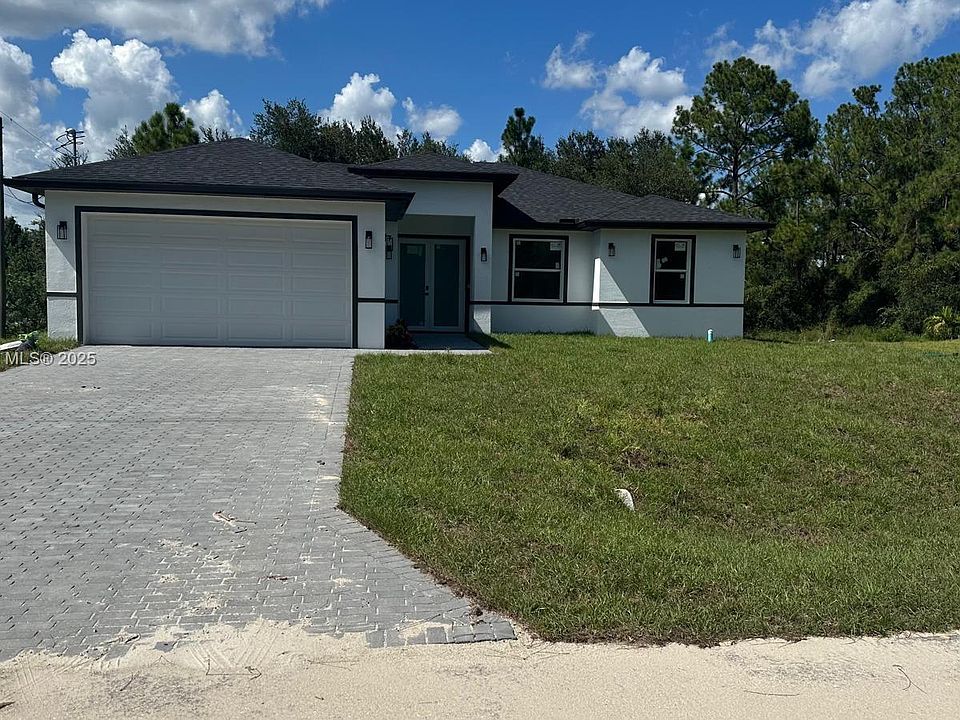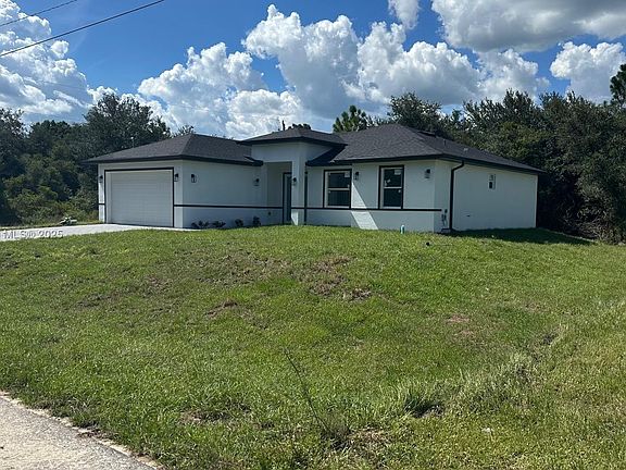 Experience modern living in this newly built 4-bedroom, 3-bathroom single-family home, completed in 2025 and perfectly positioned on a spacious corner lot in one of Lehigh Acres’ most desirable neighborhoods. Set on a generous 0.25-acre lot, this 2,021 sq. ft. residence combines contemporary design with exceptional comfort. Enjoy soaring ceilings, elegant tile flooring, luxury-finished bathrooms, quartz countertops, and stainless-steel appliances. The open-concept layout flows effortlessly into the outdoor space—ideal for creating your dream BBQ area or adding a pool. Move-in ready and built for today’s lifestyle, this home is an opportunity not to be missed!