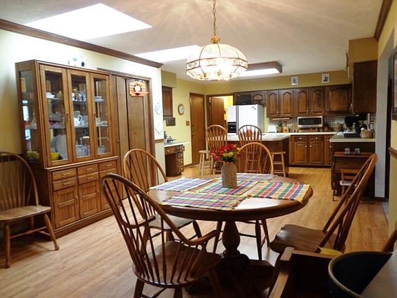 Very well maintained home. After entering the foyer, to the left you have a private living room or study, then looking forward to the huge dining/family area, with skylights and is open to the kitchen. The separate family room has decorative wood wall surrounding the wood burning fireplace and patio doors accessing the patio and rear yard. The kitchen is fully applianced and has work island and pantry. Laundry room and 1/2 bath are off the kitchen. You will enjoy evenings on the covered front porch or entertaining on the patio. The 3 bedrooms, family room, and living room are carpeted. The hallway, kitchen and dining have laminate flooring. Beautiful garden areas, yard barn, patio, large back yard, trees. PER OWNER: This house has been pre-inspected. Inspector made suggestions for GFI outlets to be added and found a leak near kitchen faucet under house. Repairs were completed and the leak turned out to be a loose hose on the clothes washer.
