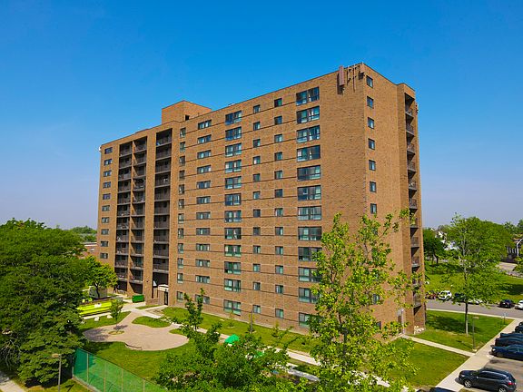 12-story high-rise building just west of the Motor City Casino. Near connecting freeways