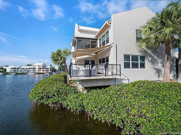 Welcome to Wonderful!Εnјοy panοramіc waterfront views frοm moѕt rooms in this moderized,upgraded,custom 2 story corner condo located in prestigious Mariner Cay boating community.Features:Impact windows,newer A/C,newer metal roof,crown molding & attractive no-carpet flooring.Fabulous patio includes a retractable remote control awning-perfect for relaxing or entertaining.Well designed kit. will impress w/ it's gorgeous granite,handsome wood cabinetry,abundant counter space & pantry.Open floor plan offers great flow for gatherings + a slider off kit. for easy grilling. Main level includes a handy 1/2 bath.Upstairs,you'll find 2 generous en-suite bedrms,each with it's own full bath.Primary suite includes a large walk-in closet w/ built-ins & an additional flex rm.w/ it's own A/C-ideal as an office or hobby rm.Mariner Cay,boater's haven,on protected Manatee Pocket w/ no bridges & quick access to inlet & ocean.Dock space is avail(up to 32')for nominal fee.2 pools,pickleball,fitness center+++