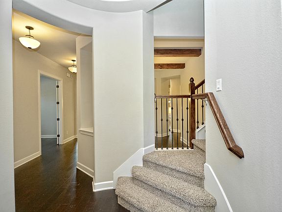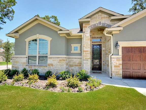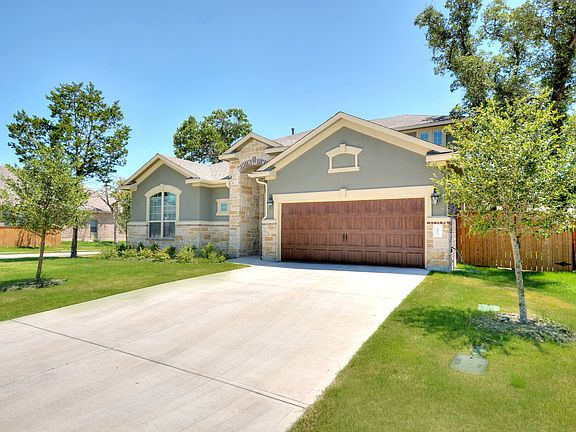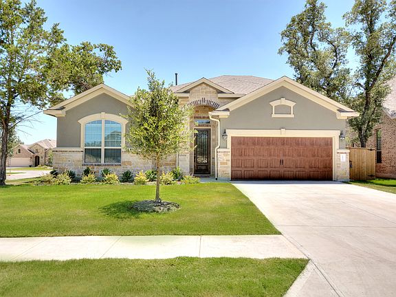 Shows like a Model Home! Mature trees line this large corner lot! Enjoy this thoroughly upgraded home with custom touches throughout. This 4 bed, 4 bath home in Highlands at Mayfield Ranch offers all bedrooms down w/game room & full bath upstairs. The upgrades include beautiful hardwood floors, custom kitchen cabinetry, granite, ceramic backsplash in kitchen, extended primary bedroom with bay windows, custom tiled soaking tub and seamless glass shower, light fixtures, wood beams in dining room, tiled accent wall in family and dining room, surround sound on back patio and in family room, in-wall wiring for TV's, security system w/cameras, Nest A/C and more! The 4th bedroom is separate and boasts a private bath perfect for guests. The laundry room is oversized with cabinets and room for a second refrigerator. The accent walls in the family and dining room give this home the warmth you're looking for. This home is ideally located in between I35 and 183A as well as WILCO Park, an 800+acre park with trails and sports fields. Community amenities include pool, splash pad, kids pool, amenity center with planned neighborhood events, play area and more!