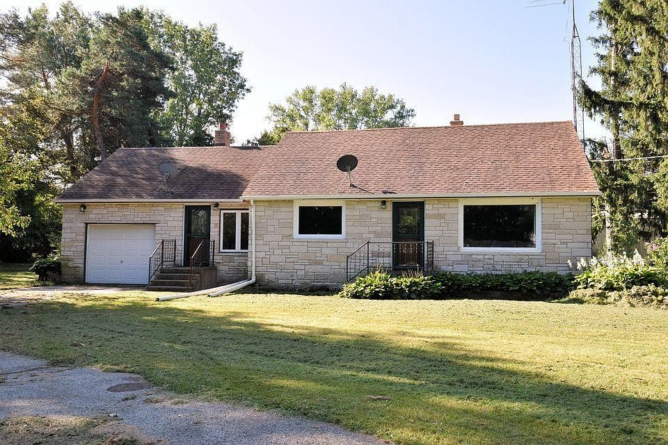 COUNTRY LIVING! LANNON STONE CAPE-COD ON JUST SHY OF 2 ACRES! THIS HOME FEATURES OPEN CONCEPT KITCHEN TO LIVING ROOM, NEWER LAMINATE FLOORING IN LIVING ROOM, SPACIOUS BREEZEWAY WITH FIREPLACE, OFFICE AREA, FINISHED ROOM ON UPPER, JUST ADD HEAT AND YOU HAVE ANOTHER BEDROOM! CIRCULAR DRIVE, TREE LINED LOT AND A HUUUUUGE POLE BARN! QUIET LOCATION, EASY ACCESS TO I-94!