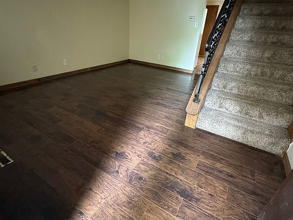 2 Bedroom townhouse for rent. Main level has living room and eat in kitchen. Upstairs has two bedrooms and bathroom. Basement has laundry hook-ups. Central AC.