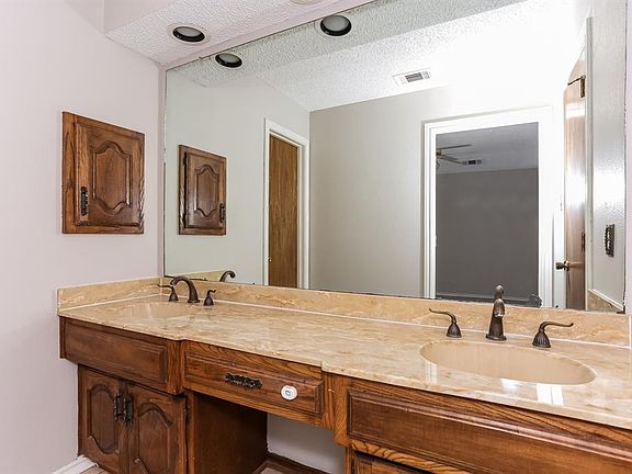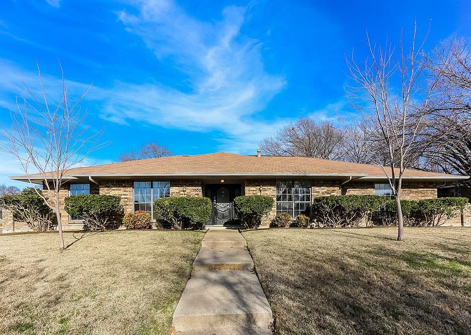 This Garland corner lot home offers a two-car garage, an in-ground pool, gas heating, a walk-in master closet and a master bathroom with dual sinks and a step-in shower.