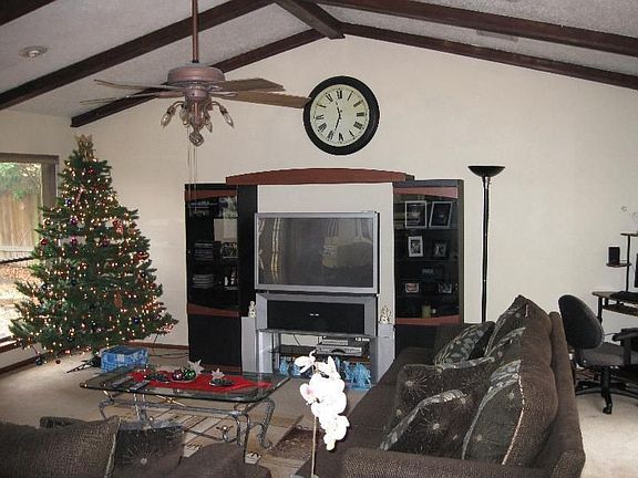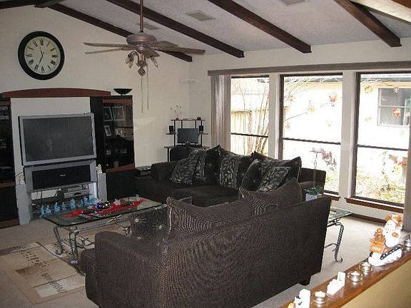 This home has a very large living area that has the feel of an even larger area because it looks out picture windows to your private court yard! It has a large tree covered lot for the kids to play.