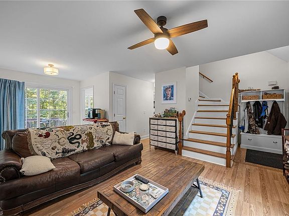 Wood-burning fireplaceLarge deckPrivate wooded settingFenced backyardMain-level primary suiteSpacious eat-in kitchenQuaint dining room