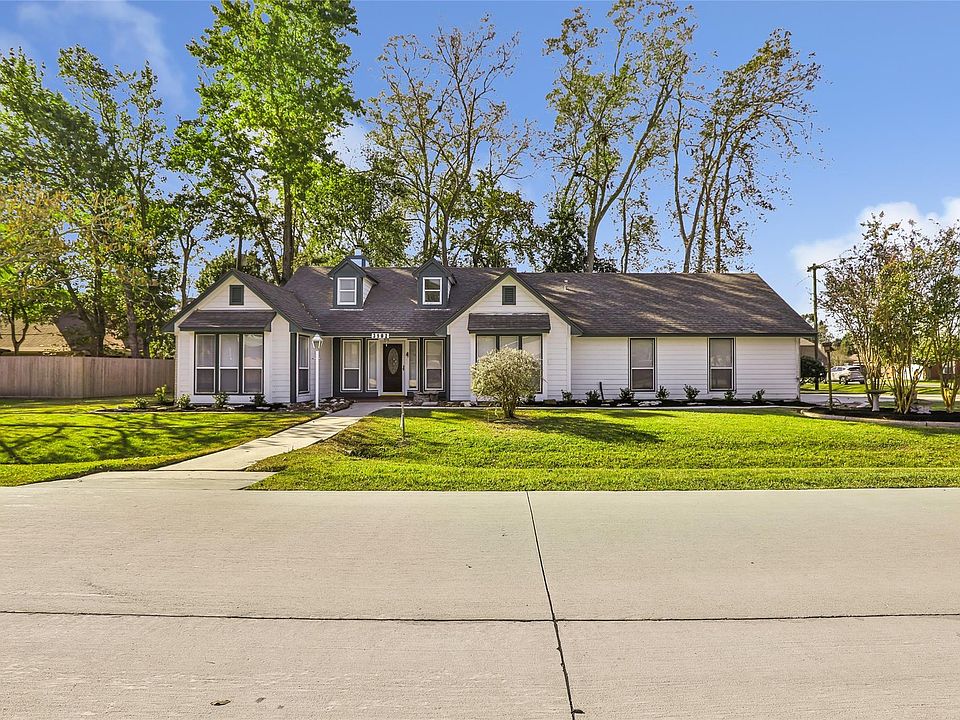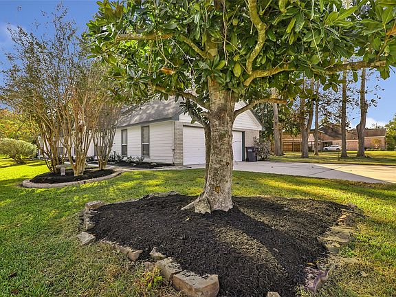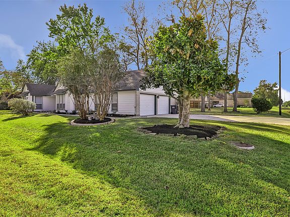 Welcome to this show stopping 3 bedroom, 2 bath home located in Fishers Landing of Mont Belvieu. With no HOA, this quaint home on two lots will check all the boxes. Upon entry, tall ceilings and plenty of windows allow in natural light and create a spacious setting. The floor to ceiling gas fireplace with built in shelving on either side, paint a picture perfect cozy atmosphere. With two secondary bedrooms down a shared hallway, and the primary bedroom located just off the kitchen, this split floorplan is perfect for all. The primary suite offers an oversized closet, dual vanity sink, separate soaking tub and shower set up, and a patio door leading to a private back patio. The large backyard features two lots, a garden shed, covered RV storage with hook ups, and a peaceful pavilion from which to observe nature. Plenty of mature trees and manicured landscaping keep the entire property shaded and give a park like feel. Located close to 99 and 146 make commuting easy. Zoned to BHISD.